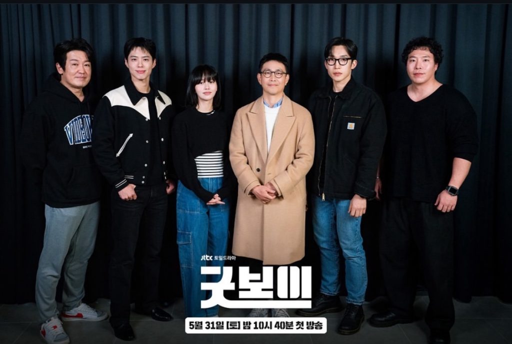 「グッドボーイ」は2025年5月31日から放送が開始されるJTBCの土日ドラマとなります。元々は2024年編成を目指していた作品ですが、撮影中にパク・ボゴムの負傷事故などがあり結局放送はこのタイミングということになりました。現在、Netflix配信も行われている「君は天国でも美しい」の後続ドラマになります!