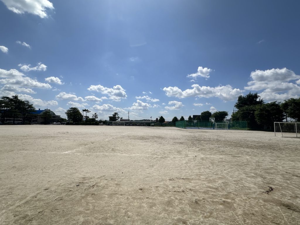 正門からは部外者立ち入り禁止と案内があったので入れなかったのですが、裏手に回ると駐車場があってそこは開けていた為、そこから校庭を撮影しました。ただ流石に無断で校庭に入る訳にも行かないので蛇口を探すことは出来ませんでした。