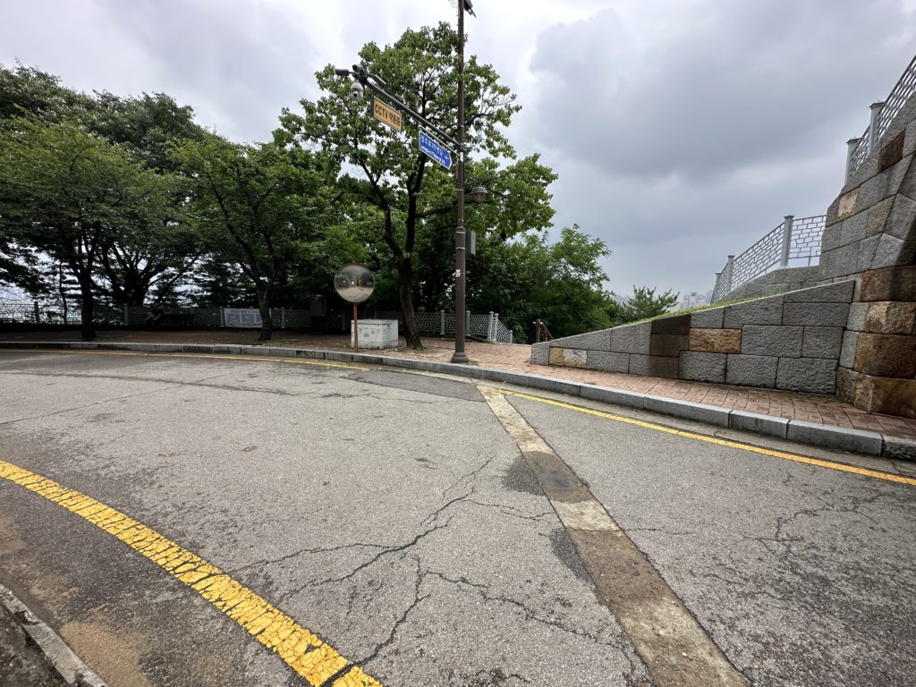 このロケ地、場所はソウルなんですけど地下鉄6号線の上月谷駅(상월곡역)が最寄りで、そこから坂を登って、更に木に覆われた道をまた上がってかなり高い所まで登っていく必要があります💦